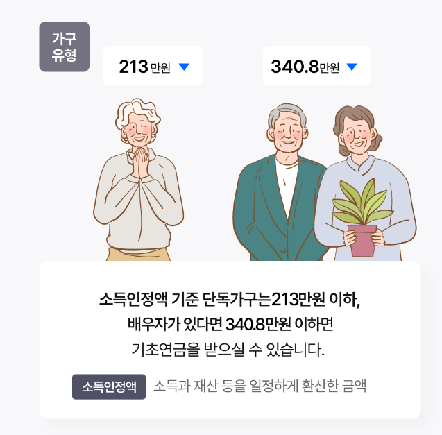 소득 인정액이 기준 중위소득의 40% 이하인 경우에 한해 수령이 가능합니다.